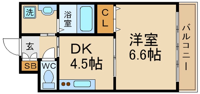 | 間取り詳細 | 洋室 6.6畳 、 DK 4.5畳 |