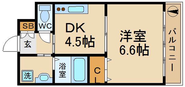 | 間取り詳細 | 洋室 6.6畳 、 DK 4.5畳 |