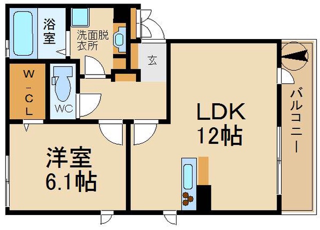 | 間取り詳細 | 洋室 6.1畳 、 LDK 12畳 |