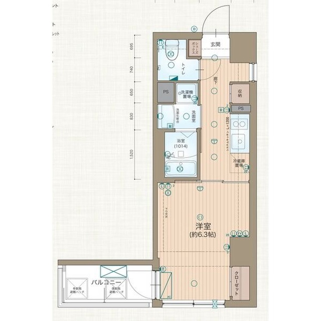 | 1K | 洋室 6.3畳 | 25.1㎡ |