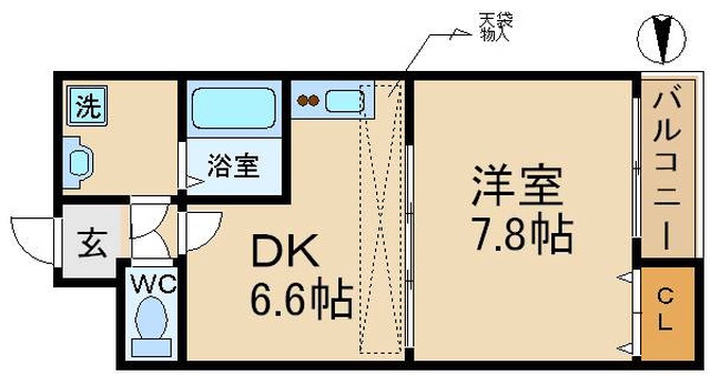 | 間取り詳細 | 洋室 7.8畳 、 DK 6.6畳 |
