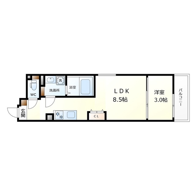 | 間取り詳細 | 洋室 3畳 、 LDK 8.5畳 |
