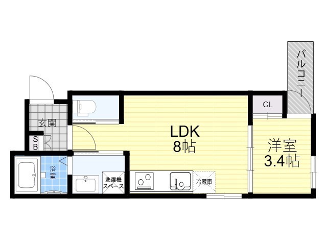 | 間取り詳細 | 洋室 3.4畳 、 LDK 8畳 |